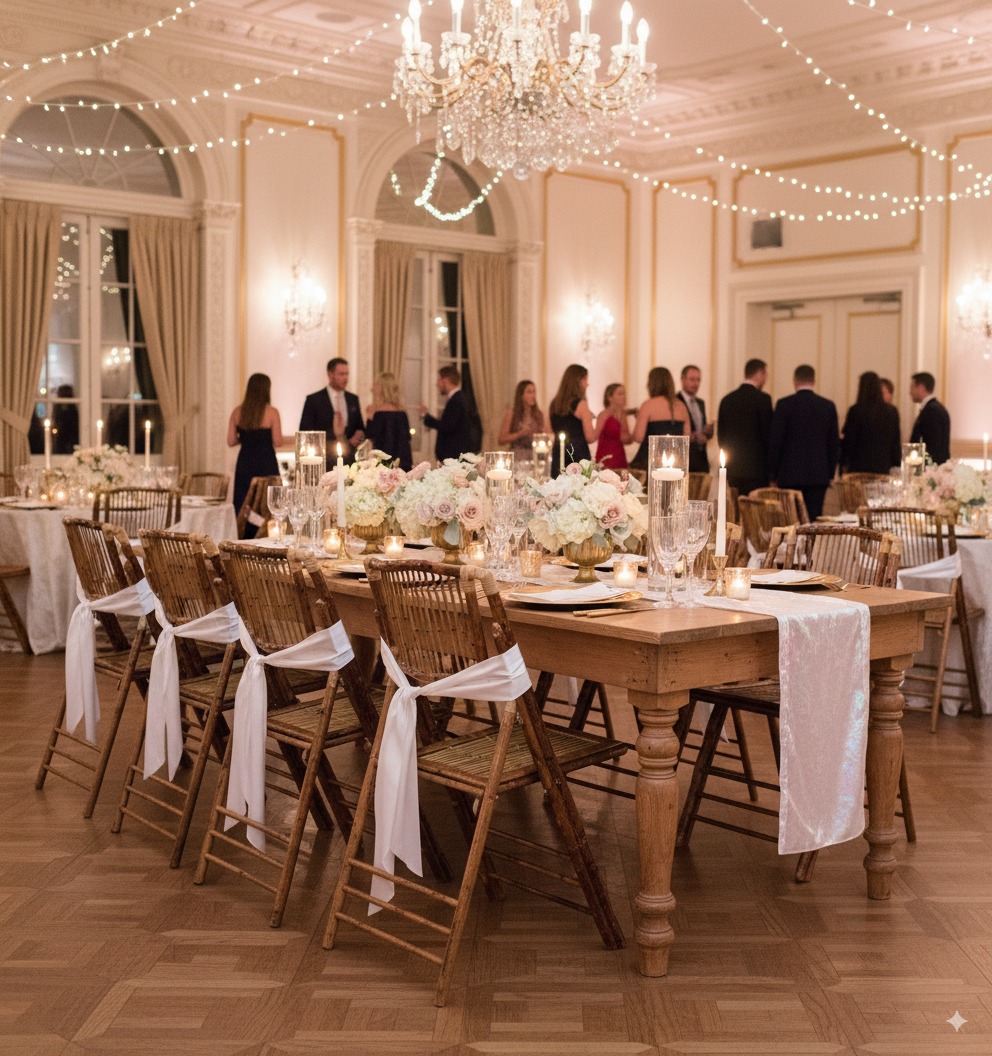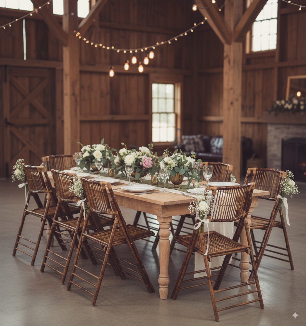 Step up your events with this bamboo folding chair that can go from a modern look to a bohemian feel. Mixing textures and colors gives any event a fresh feel.